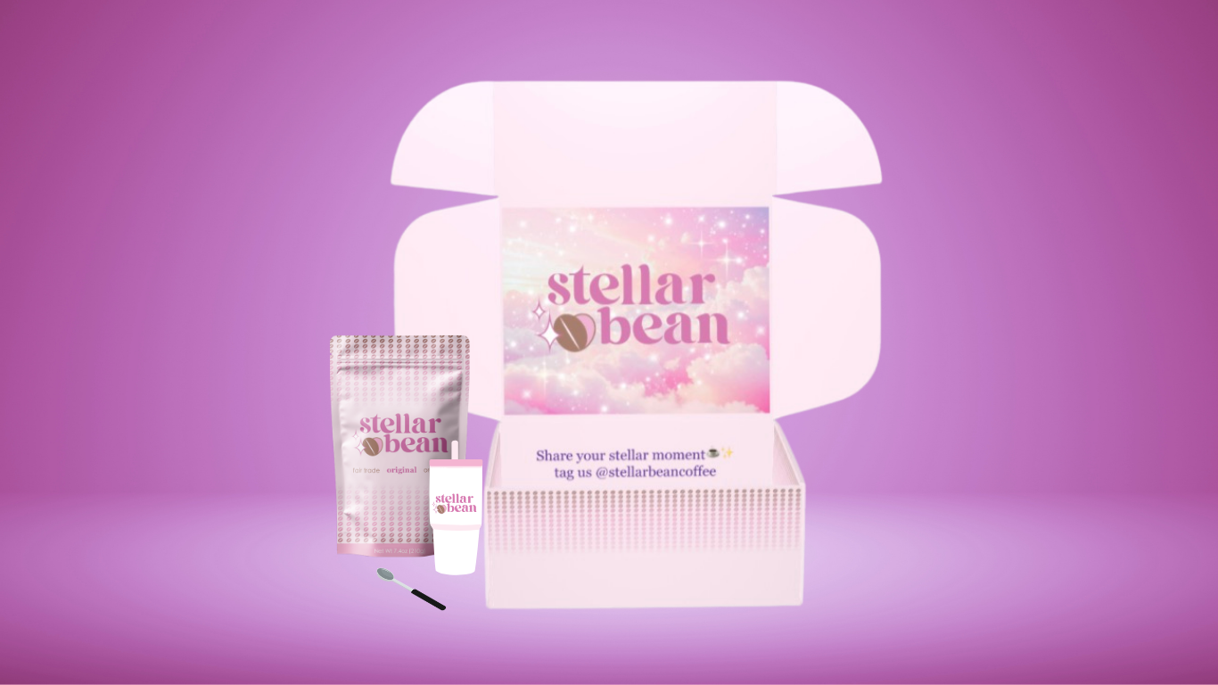 To address this, I designed a subscription-based instant coffee brand focused on fair trade sourcing and accessibility. Gen Z values inclusive, trendy, and eco-conscious consumer brands. With this in mind, Stellar Bean promises organically grown coffee that is also fair trade certified and has a delicious, coffee shop taste. These qualities make Stellar Bean stand out in a sea of coffee brands that fail to meet these certifications.